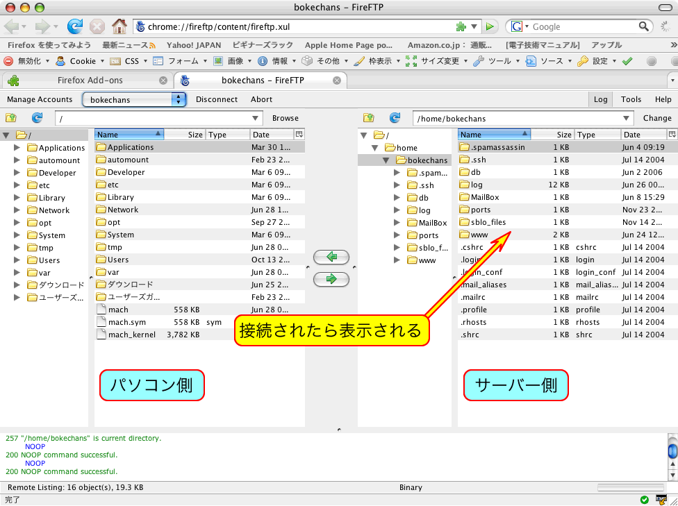 「ファイル転送ソフト」とは少し違いますが、FireFoxならMacもWindowsも使えるため、ここではこのFireFTPでの転送方法を紹介します。