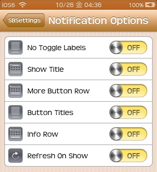 設定方法はDropdown Windowのやり方と同じで、この設定のオン/オフで、通知センターに表示されるトグル表示を制御でき、表示されるトグルの優先順位もここで決定します。