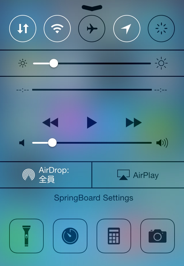 ロック画面でもコントロールセンターは出ますが、その場合、「SpringBoard Settings」の表示は、設定アプリの設定により非表示になっていることもありますので、表示されない場合は、設定アプリで設定内容を確認しましょう。