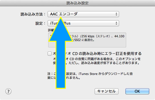 読み込み設定ウィンドウが開きますので、読み込み方法が「AACエンコーダ」になっているか確認して下さい。