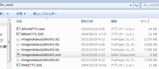 それぞれのTTFファイルが出力されたところで、TTC化して仕上げましょう。