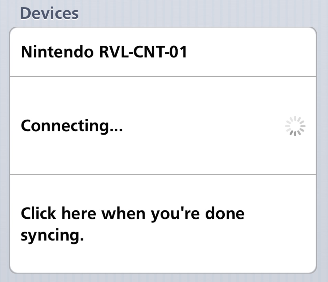 デバイスが認識されると、Wiiリモコンのランプが点滅から点灯に変わります。